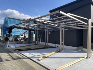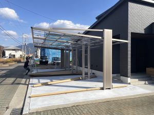 スタイリッシュなお洒落カーポート設置中でした~♪