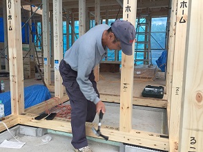 最後には、S様に記念のピン打ちをしてもらいました。柱には、記念の言葉も書いてもらいました。