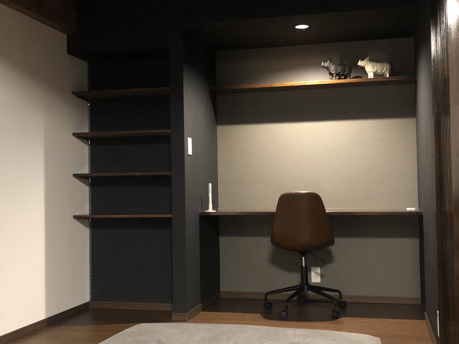 和室にあった収納もオープンにし、可動棚、カウンターを取り付け書斎スペースになりました。